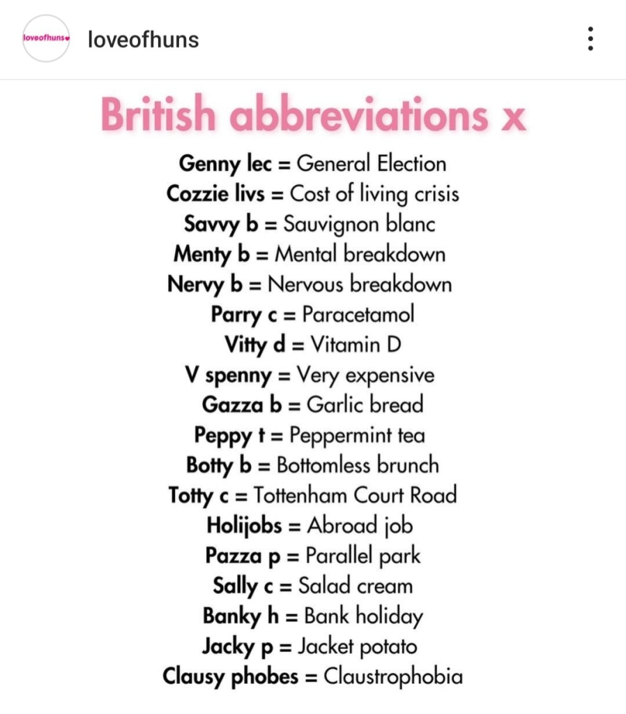 We are halfway through January now. The Holibobs are over and we have come to the end of Chrimbo Limbo – that uncertain period between Christmas and New Year. Dishy Rishi is still in number 10 and, despite unprecedented crises in the health services (though the Panny-D seems to have subsided and Locky-D is just a memory) and family finances (in meltdown due to the Cozzi-Liv), we will have to wait until next year for a Genny-Lec (and perhaps the predicted Labby-Maj once the votes have been counted). In the midst of adversity, on social media (on Facey-B, Insta-G, and even Linky-D) the usual barrage of banter, badinage and bonhomie continues unabated nevertheless. As my Twitter friend Amanda comments…